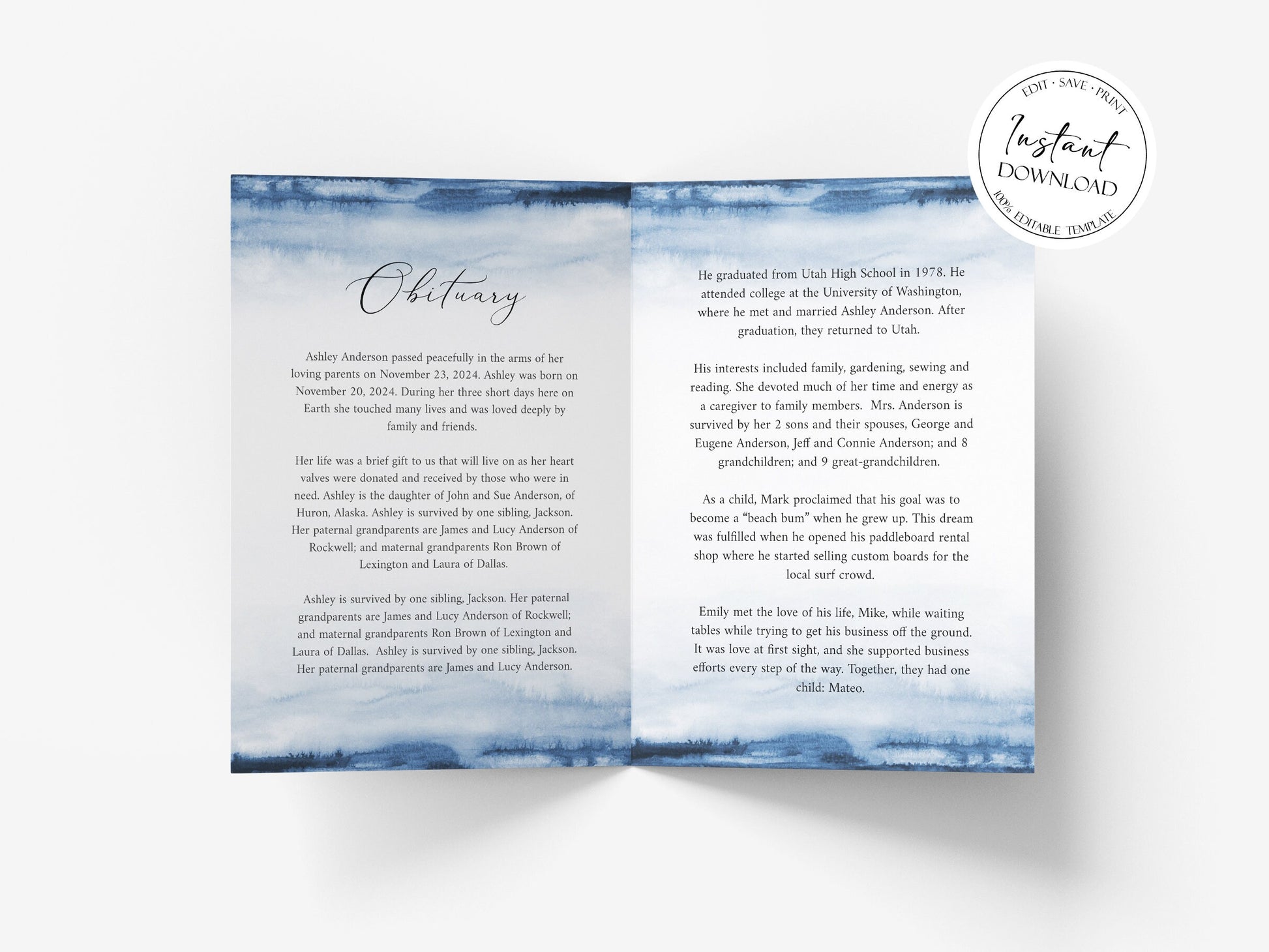 Source : www.shutterfly.com8 Page Blue Watercolor Baby Funeral Program Template B4